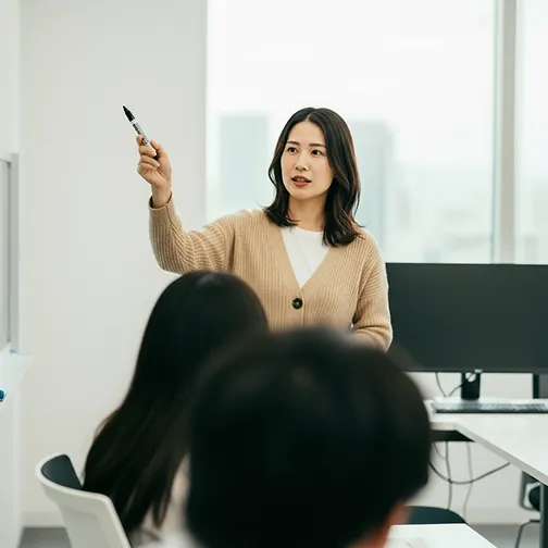 Global Standardでは、年功序列にとらわれず、成果と挑戦を正当に評価します。入社1年目からクライアント研修の企画や提案に携わることができ、若手であっても成果を出せば20代でマネージャー職や海外案件を任されるチャンスがあります。発言や提案が通りやすく、自分のアイデアをそのまま形にできる文化が根付いており、挑戦したい人にこそ最適な環境です。